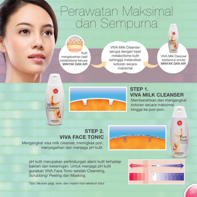 Ketahui jenis kulitmu · 2. Ikat rambut anda ke belakang. Oleskan pada wajah dan leher sambil lakukan message ringan, kemudian bersihkan dengan kapas/tissue. Mudah meresap dikulit dan tidak lengket dengan keharuman yang menyegarkan. Sama dengan susu pembersih lainnya, cara menggunakan produk viva milk cleanser sangat mudah sekali.